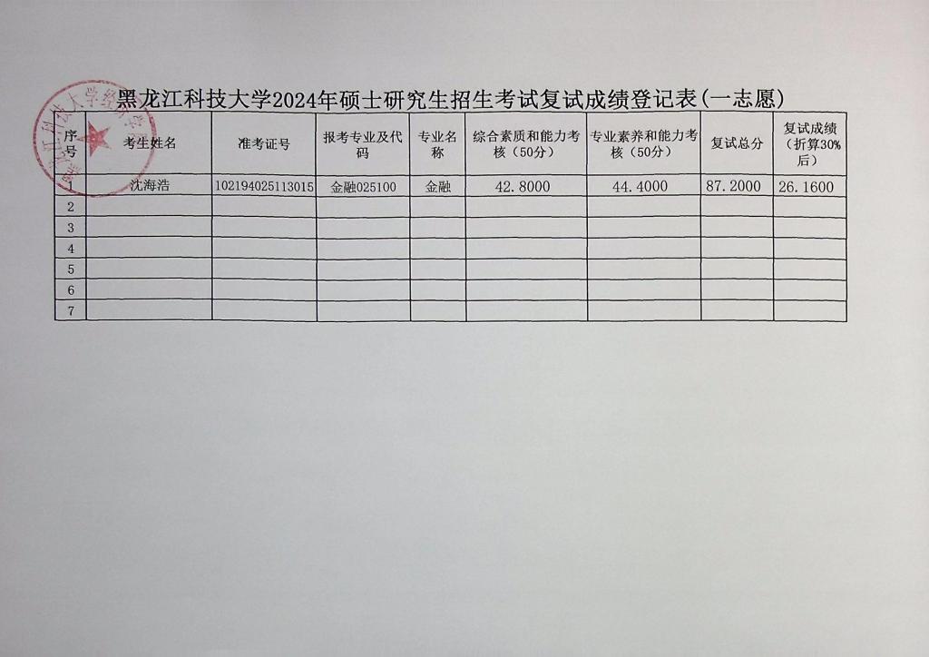 xcsports2024年硕士研究生招生考试复试成绩登记表(一志愿)