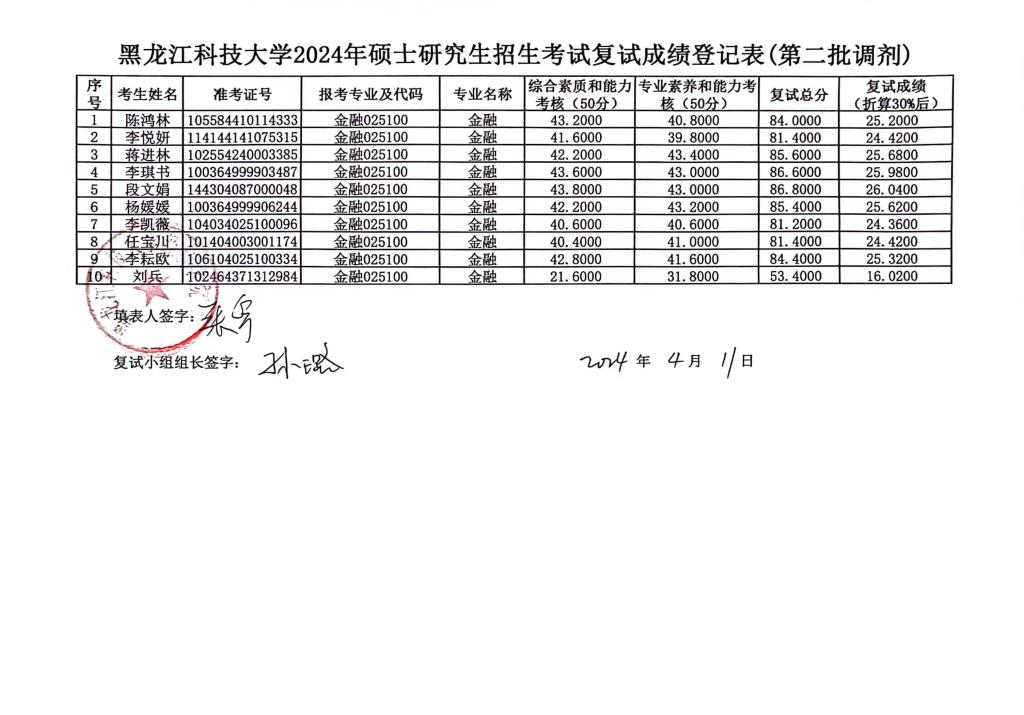xcsports2024年硕士研究生招生考试复试成绩登记表(第二批调剂)