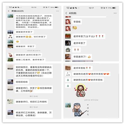 母校难忘、感谢师恩。老师们忘我无私的辛劳,换来了毕业生们深深的感动和对母校的不舍,毕业生们纷纷在微信、QQ群和朋友圈里留言,表达对母校和老师们的谢意。相信,在领导和老师们的谆谆教诲、行为示范下,公司2020届毕业生必将建功立业,大展宏图。