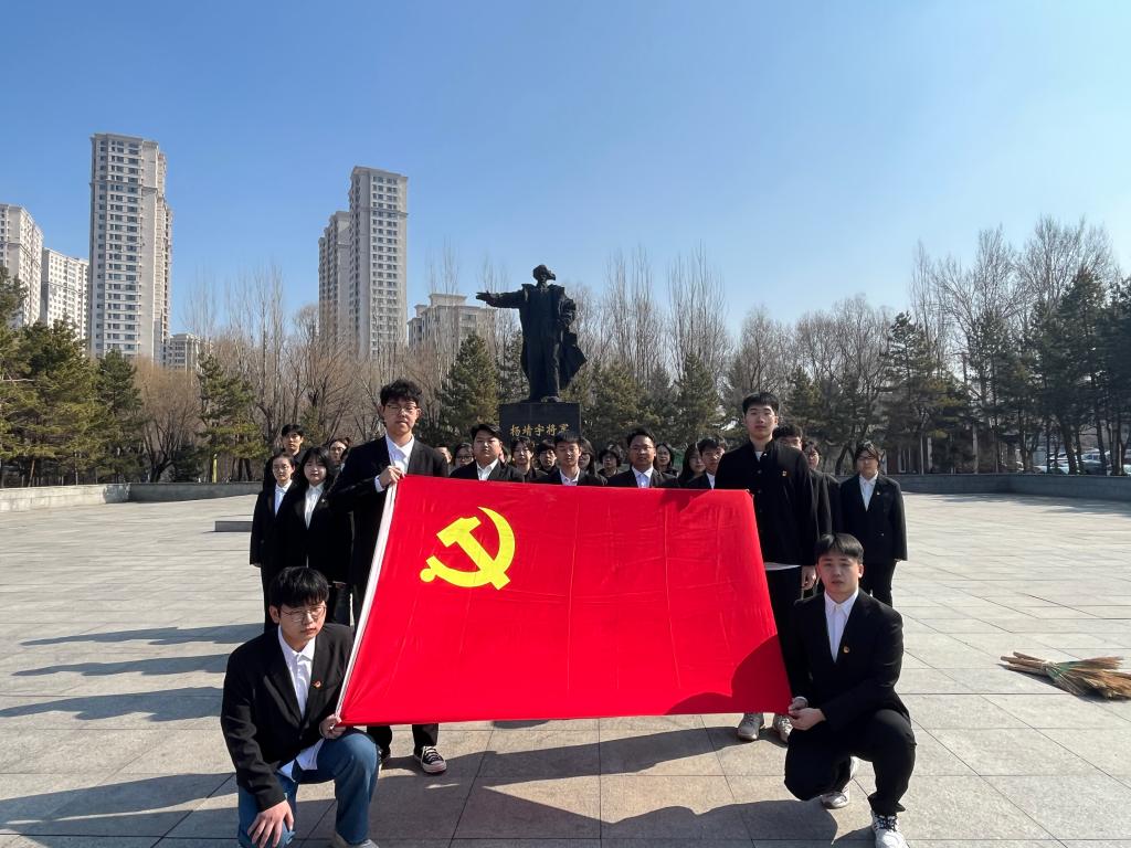 活动伊始,全体党员师生整齐列队肃穆立于杨靖宇将军雕像前,瞻仰将军英姿,追忆将军事迹。随后,党员师生依次敬献花篮、鲜花,表达崇高的敬意、无限的哀思。在庄严肃穆的氛围中,党支部书记苏宇以《追寻信仰之光 传承铁血忠魂 做新时代守纪党员》为题讲授微党课,号召党员师生要以革命先烈为榜样,在奋进路上永葆忠诚底色,在考验面前恪守纪律底线。党课结束后,全体师生垂首肃立,集体默哀。春风掠过松枝的轻响,仿佛诉说着跨越时空的信仰对话。活动最后,在鲜红的党旗下,全体党员高举右拳,重温入党誓词,铿锵誓言在公园上空久久回荡。